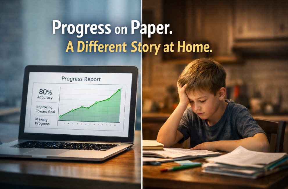 You might see a chart, a percentage, or a brief note in an IEP update. On paper, everything may look fine. At home, it may feel very different.